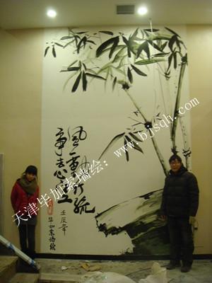 飯館水墨畫竹子