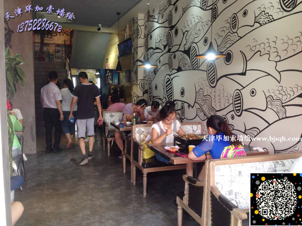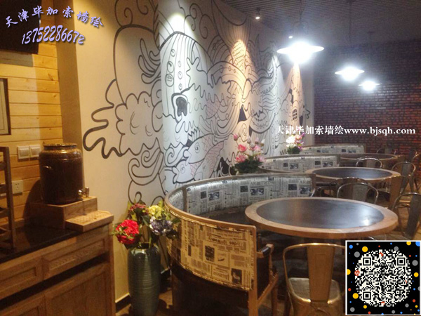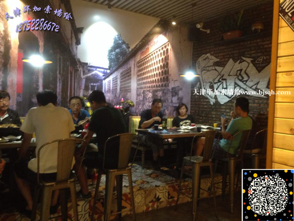 繪畫地點:塘沽工農村貽景花園底商石頭巷子烤魚餐廳